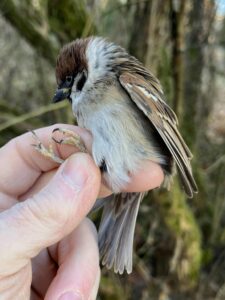 Drugie tej zimy łapanie przy karmniku w ogrodzie przydomowym. Pogoda jesienna, tj. z temperaturą ok. +0,00C bez śladu śniegu. W godzinach 900– 1200 pierwszego dnia i 900– 1300 drugiego, złapało się 50 ptaków z 6 gatunków, w tym 2 retrapy.
