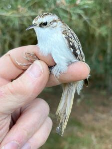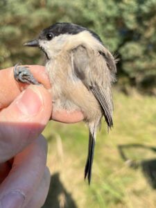 Po wielu dniach odłowów w trzcinowiskach, postanowiliśmy przypomnieć sobie jak wyglądają inne ptaki. Wybór padł na zadrzewienia porolne we wsi Owczegłowy, gdzie ostatnio łapaliśmy 7 lat temu. Jest to miejsce, w którym udawało się często złapać wszystkie sześć gatunków naszych sikor. W tym roku brakowało nam jeszcze tego gatunku i mieliśmy nadzieję, że uda się ten brak uzupełnić. No i sikory nas nie zawiodły – były wszystkie. Przez dwa całe dnie złapało się 175 ptaków z 17 gatunków; retrapów nie było. To pierwsze nasze odłowy, kiedy najwięcej złapało się mysikrólików. Stało się tak dzięki wabieniu głosem z magnetofonu ustawionym przy sieciach zlokalizowanych między świerkami. Struktura odłowionego zgrupowania mysikrólików była następująca: 81 ptaków w 1 kalendarzowym roku życia – 97,6% i 2 starsze (samiec i samica) – 2,4%; jeśli chodzi o płeć, to były 64 samce – 77,1 i 19 samic – 22,9%. Dominacja samców wynikała z pewnością z tego, że to one bardziej zdecydowanie reagują na śpiew innych samców – również poza sezonem lęgowym. Wśród odłowionych ptaków oprócz kompletu sikor, były również obydwa pełzacze.